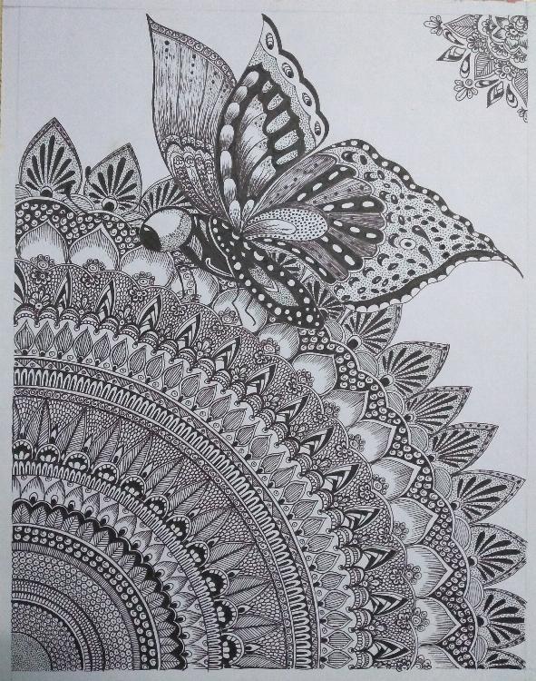 Mandala art with Black gel pen