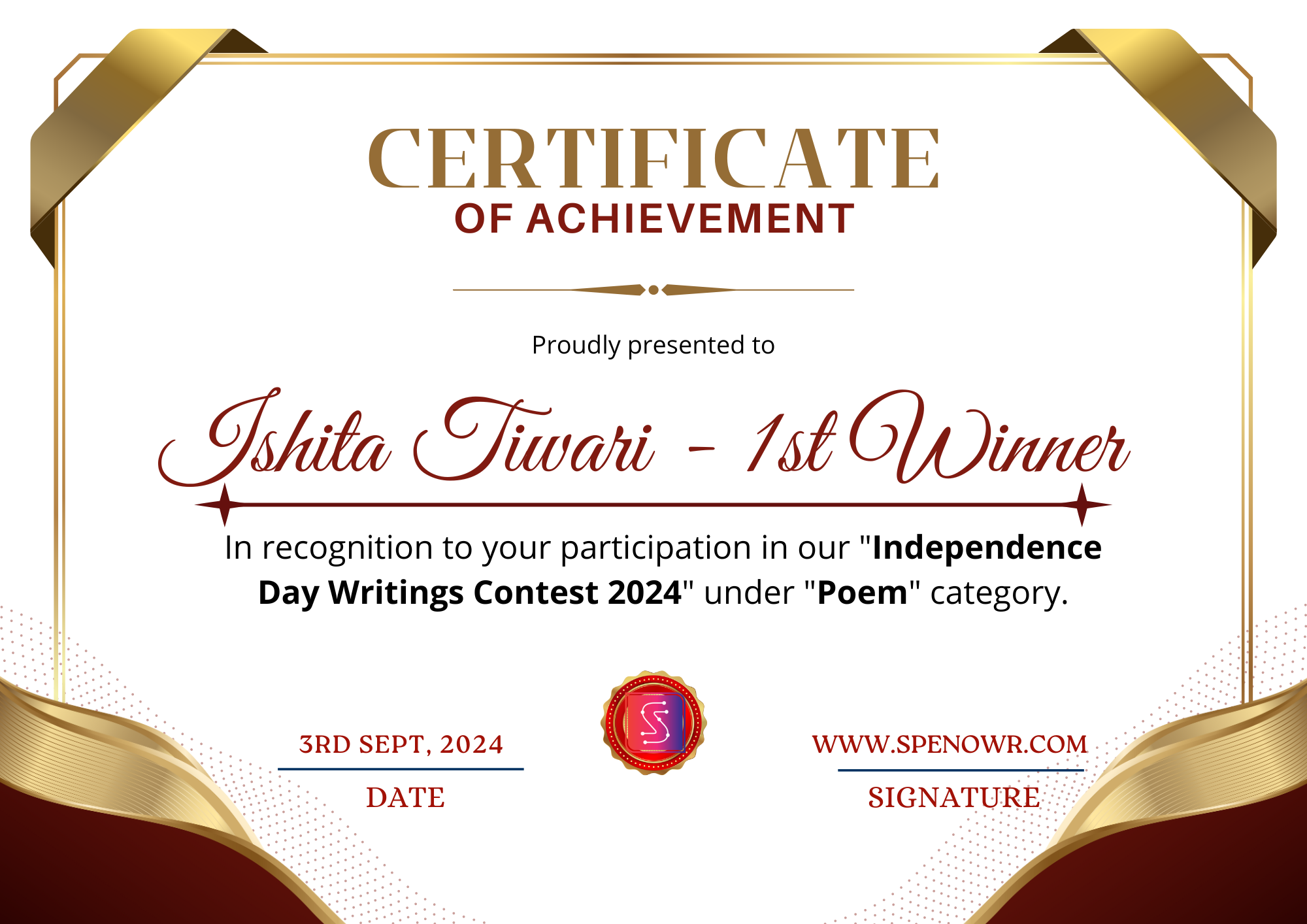 Wins 1st position in the "poem" category.