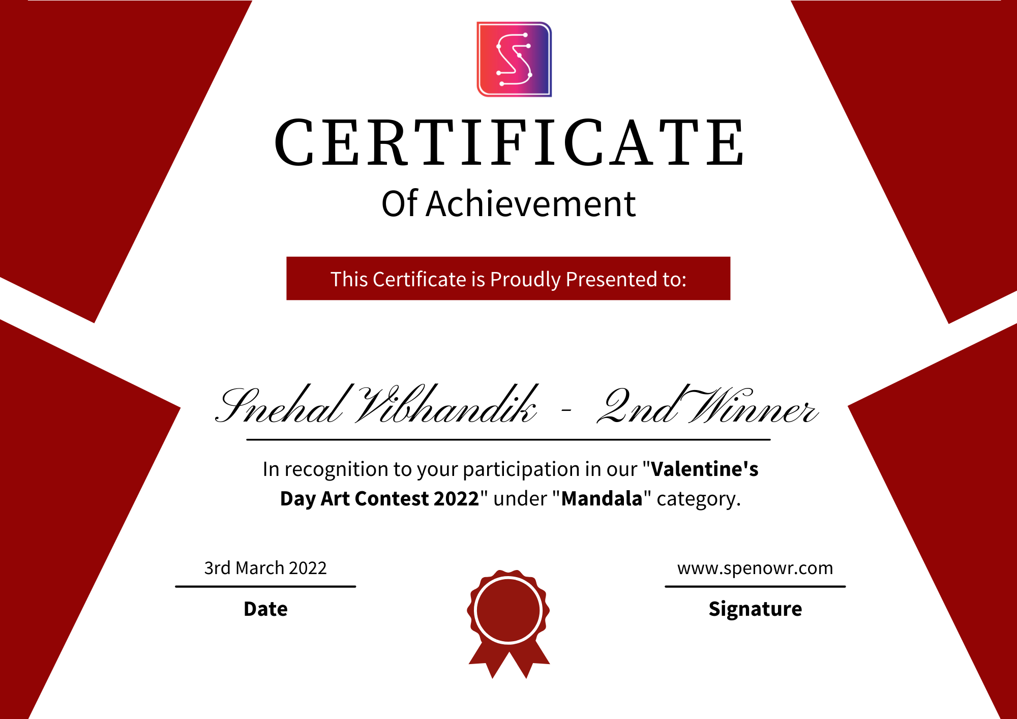 Wins 2nd position in Mandala category.