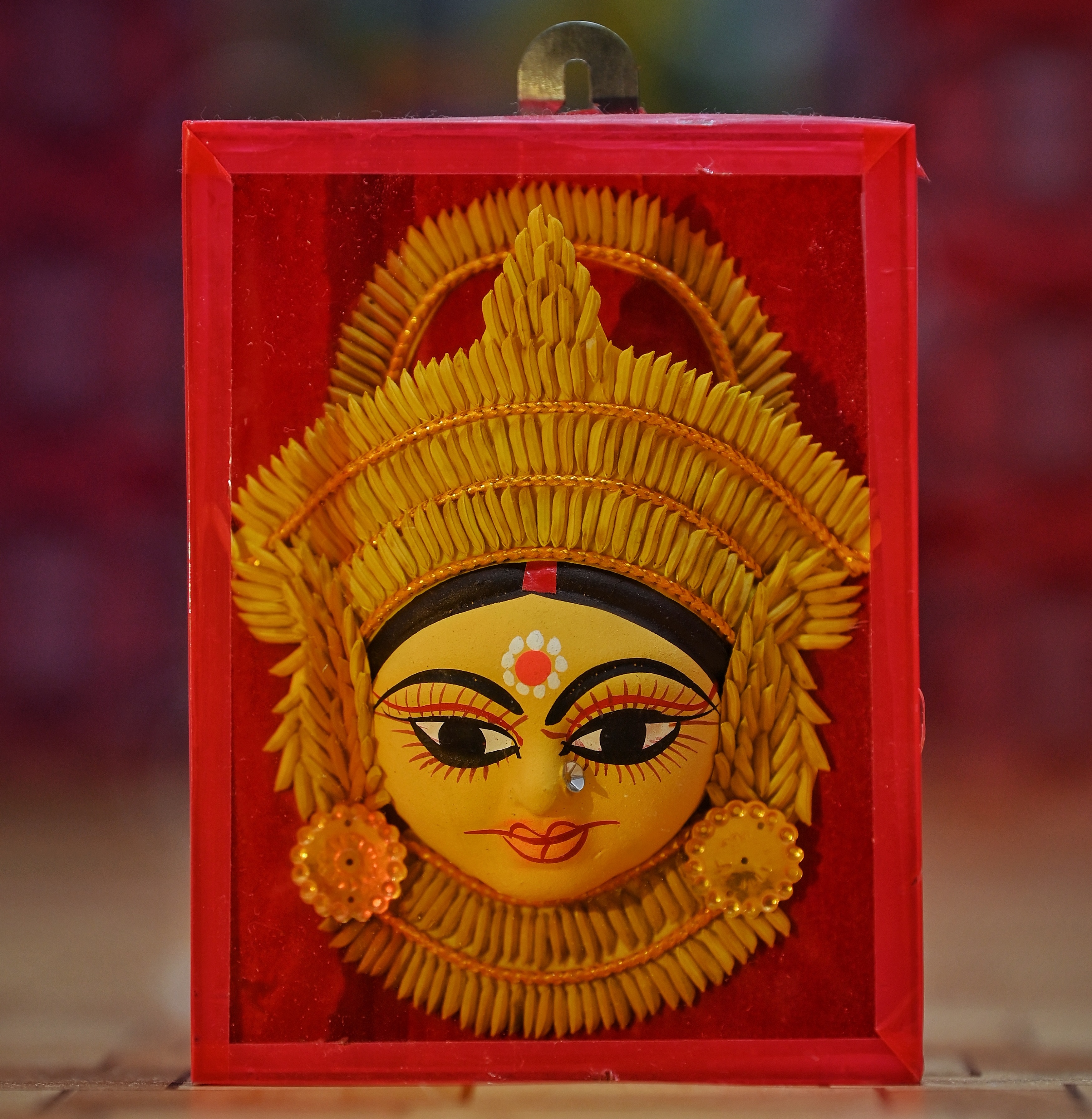 1)This Decorative Murti can be used as Pooja Mandir Interior Decoration Accessories / Table Decor Items or Showcase Decoration . As per VASTU Methology Religious Spritual Idols Showpieces Placed in North East Direction of Drawing / Living & Pooja Room , brings Wealth , Health , Peace & Happiness Among The Home Members. 2) This Religious / Vastu Idol is Made of Paddy and kept inside a glass cover. The article has a dimension of 5'' and width of 3.5''.